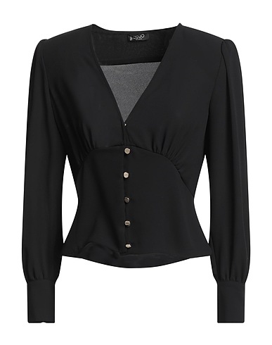 top, crepe, plain colour, gathered, deep neckline, long sleeves, buttoned cuffs, button fastenings, machine wash or dry clean, do not bleach, do not tumble dry