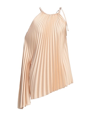 top, satin, plain colour, pleated, brand logo, crewneck, sleeveless, tie fastening, machine wash or dry clean, do not bleach, tumble dry