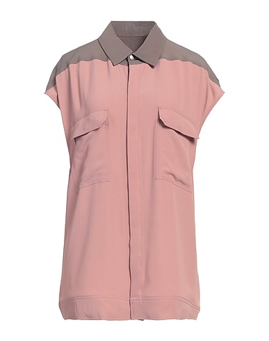 safari shirt, crepe, two-tone, no appliqués, classic collar, short sleeves, snap fastenings, two chest pockets, dry clean, do not bleach, do not tumble dry, this brand runs small