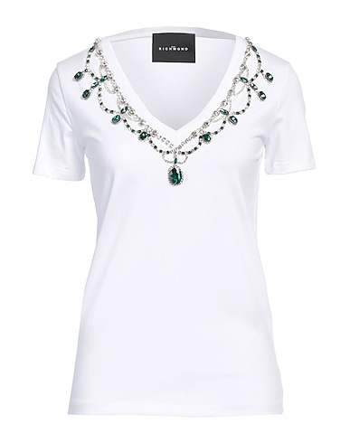 t-shirt, jersey, plain colour with appliqués, crystals, v-neck, short sleeves, hand wash, do not bleach, do not tumble dry