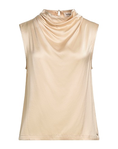 top, satin, plain colour, brand logo, cutout, draped neckline, sleeveless, 1 button, machine wash or dry clean, do not bleach, do not tumble dry