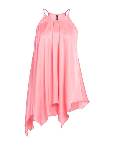 top, satin, plain colour, brand logo, crewneck, sleeveless, side splits, asymmetric hem, hand wash or dry clean, do not bleach, do not tumble dry