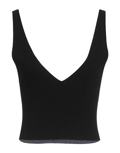 crop top, knitted, lightweight knit, plain colour, brand logo, deep neckline, sleeveless, hand wash, do not bleach, do not tumble dry