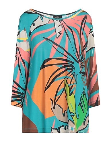 top, jersey, stretchy fabric, multicolour, no appliqués, scoop neckline, 3/4 length sleeves, machine wash or dry clean, do not bleach, do not tumble dry