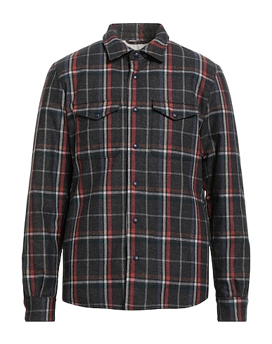 overshirt, wool, flannel, tartan pattern, no appliqués, classic collar, long sleeves, fully lined, snap fastenings, multipockets, dry clean, do not bleach, do not tumble dry