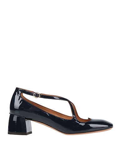pumps, patent leather, plain colour, no appliqués, leather lining, buckle fastening, elasticated inserts, square toe, square heel, covered heel, leather/rubber sole, contains non-textile parts of animal origin