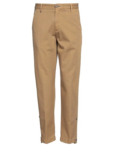 gabardine, strap detailing, brand logo, solid colour, mid rise, belt loops, tapered leg, regular fit, 1 button, zipper closure, multipockets, chinos
