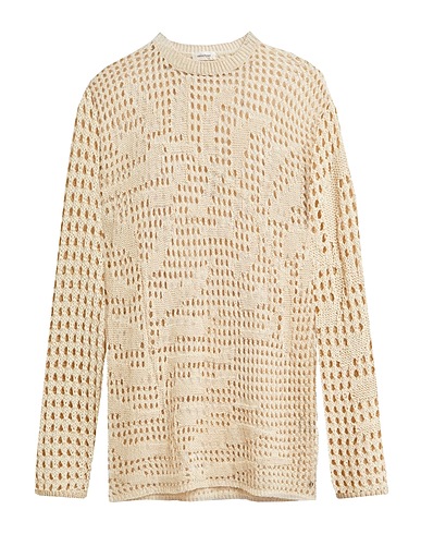 open-knit, lightweight knit, plain colour, brand logo, crewneck, long sleeves, hand wash or dry clean, do not bleach, do not tumble dry