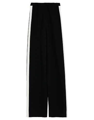 wide-leg trousers, wool, mid-weight knit, plain colour, side seam stripes, mid rise, regular fit, without pockets, do not wash, do not bleach, do not tumble dry, this brand runs large
