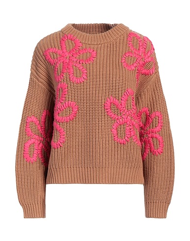 knitted, medium-weight knit, floral-print, embroidered, brand logo, crewneck, long sleeves, hand wash or dry clean, do not bleach, do not tumble dry