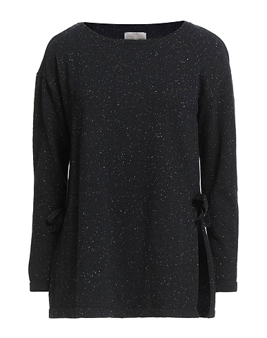 knitted, lightweight knit, mélange, bow-detailed, scoop neckline, long sleeves, hand wash or dry clean, do not bleach, do not tumble dry