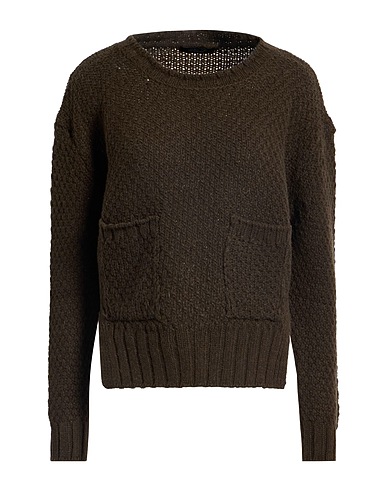knitted, medium-weight knit, mélange, no appliqués, crewneck, long sleeves, patch pockets, side splits, hand wash or dry clean, do not bleach, do not tumble dry