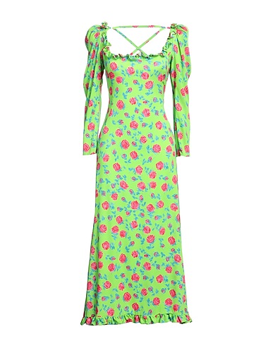 crepe, ruffles, floral-print, scoop neckline, long sleeves, partially lined, without pockets, stretch, dry clean, do not bleach, do not tumble dry, flared dress