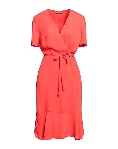 crepe, brand logo, belt, plain colour, deep neckline, short sleeves, partially lined interior, zipper closure, no pockets, trapeze style