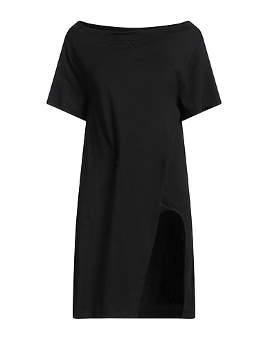 dress, jersey, plain colour, embroidered logo, boat neckline, short sleeves, fully lined, front slit, machine wash, do not bleach, do not tumble dry