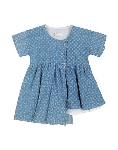 denim, distressed, plain colour, no appliqués, crewneck, short sleeves, fully lined, button fastenings, without pockets, machine wash or dry clean, do not bleach, do not tumble dry