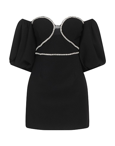 bodycon dress, crepe, plain colour with appliqués, crystals, off-the-shoulder, short sleeves, puffed sleeves, fully lined, zip fastening, hand wash or dry clean, do not bleach, do not tumble dry, amp up the glamour with chic designer party outfits for your next event or fun night out