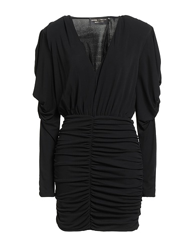 bodycon dress, jersey, plain colour, draped, v-neck, long sleeves, shoulder pads, fully lined, zip fastening, machine wash or dry clean, do not bleach, do not tumble dry