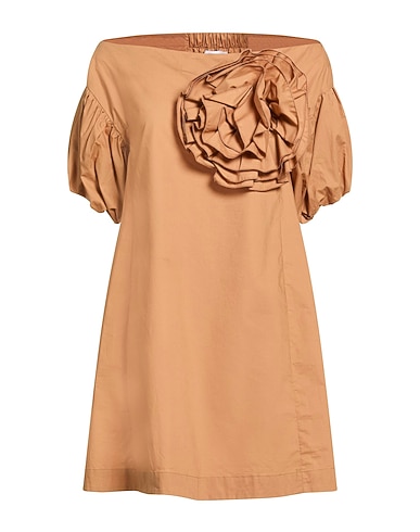 flared dress, poplin, stretchy fabric, plain colour with appliqués, floral appliqués, scoop neckline, short sleeves, puffed sleeves, unlined, without pockets, dry clean, do not bleach, do not tumble dry