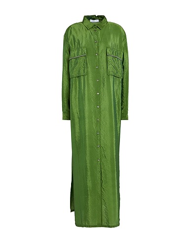 shirt dress, satin, hammered, plain colour with appliqués, embellished, classic collar, long sleeves, buttoned cuffs, button fastenings, two chest pockets, side splits, hand wash or dry clean, do not bleach, tumble dry