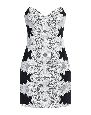 bodycon dress, crepe, lace, two-tone, no appliqués, deep neckline, sleeveless, partially lined, hook fastenings, zip fastening, stretch, dry clean, do not bleach, do not tumble dry