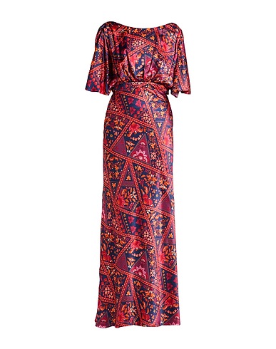 flared dress, satin, floral-print, gathered, crewneck, short sleeves, zip fastening, dry clean, do not bleach, do not tumble dry