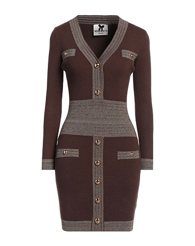 bodycon dress, knitted, metallic, lightweight knit, two-tone, button-embellished, v-neck, long sleeves, unlined, faux pockets, hand wash or dry clean, do not bleach, do not tumble dry