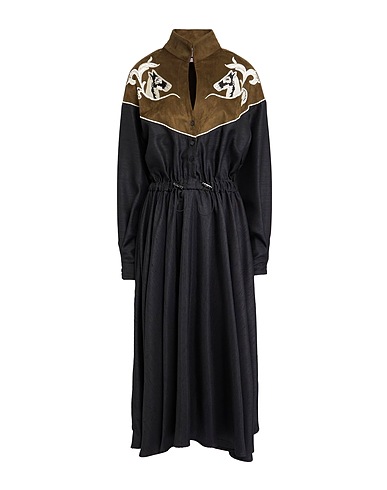 shirt dress, shantung, suede-effect fabric, two-tone, embroidered, mandarin collar, long sleeves, unlined, button fastenings, drawstring waist, slit pockets, dry clean, do not bleach, do not tumble dry, this brand runs large