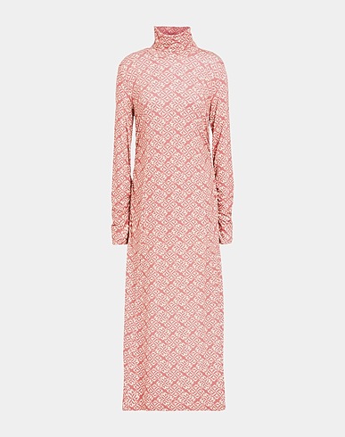 flared dress, jersey, two-tone, no appliqués, turtleneck, long sleeves, unlined, without pockets, stretch, hand wash or dry clean, do not bleach, do not tumble dry