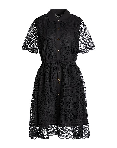 shirt dress, lace, plain colour, no appliqués, classic collar, short sleeves, fully lined, button fastenings, belted waistline, dry clean, do not bleach, do not tumble dry