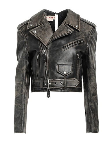 biker jacket, leather, tabs, plain colour, lapel collar, long sleeves, zipped cuffs, fully lined, zip fastening, zipped pockets, contains non-textile parts of animal origin, do not wash, do not bleach, do not tumble dry, do not iron