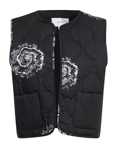 woven, floral-print, no appliqués, deep neckline, single-breasted , sleeveless, fully lined, multipockets, machine wash or dry clean, do not bleach, do not tumble dry