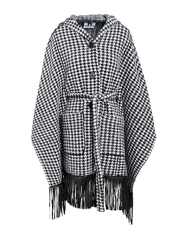 cape, knitted, medium-weight knit, fringes, belt, houndstooth, hooded, single-breasted , unlined, button fastenings, multipockets, hand wash or dry clean, do not tumble dry