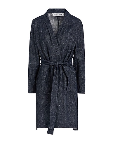 denim trench coat, denim, belt, plain colour, dark wash, deep neckline, long sleeves, unlined, multipockets, dry clean, do not bleach, do not tumble dry