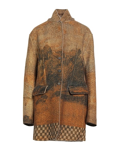 single-breasted coat, felt, no appliqués, multicolour, mandarin collar, long sleeves, partially lined, button fastenings, flap pockets, dry clean, do not bleach, do not tumble dry