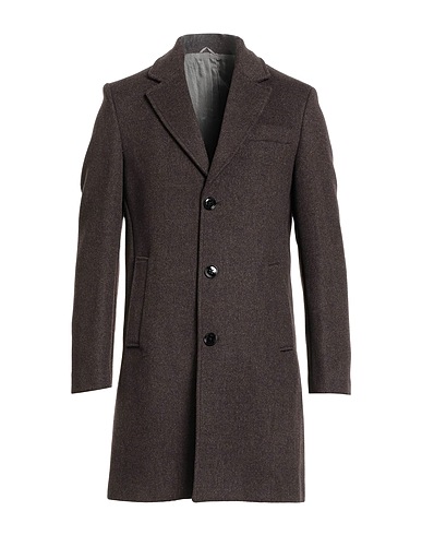single-breasted coat, brushed-felt, brand logo, plain colour, lapel collar, long sleeves, buttoned cuffs, fully lined, button fastenings, slit pockets, one chest pocket, rear slit, dry clean, do not bleach, do not tumble dry