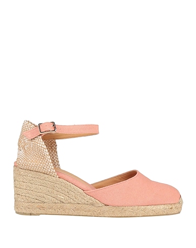 espadrilles, canvas, plain colour, no appliqués, round toe, wedge, rubber sole, leather lining, contains non-textile parts of animal origin