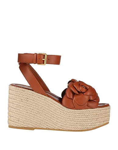 leather, no appliqués, solid colour, leather lining, buckle fastening, round toeline, wedge heel, rubber sole, contains non-textile parts of animal origin, rope wedge