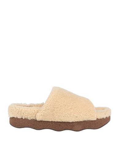 sandals, sherpa fleece, leather, multicolour, no appliqués, lined in shearling, round toe, flat, flatform, contains non-textile parts of animal origin