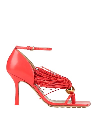 thong sandals, leather, plain colour with appliqués, tassels, metal applications, buckle-fastening ankle strap, square toe, spike heel, leather/rubber sole, leather lining, contains non-textile parts of animal origin, large sized, amp up the glamour with chic designer party outfits for your next event or fun night out