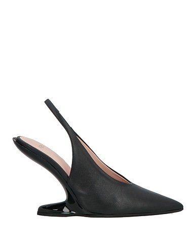 slingback pumps, leather, plain colour, brand logo, leather lining, elasticated strap, pointed toe, sculpted heel, rubber sole, contains non-textile parts of animal origin, small sized