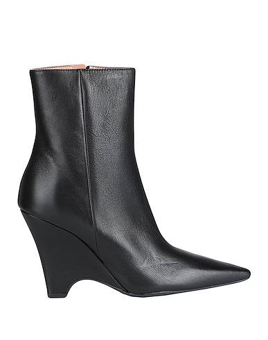 leather, no appliqués, solid colour, leather backing, zipper closure, narrow toeline, wedge heel, covered wedge, rubber sole, contains non-textile parts of animal origin, ankle boots