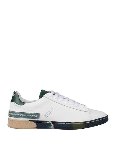 leather, brand logo, two-tone, leather backing, laces, round toeline, flat, rubber cleated sole, contains non-textile parts of animal origin, low-tops & trainers