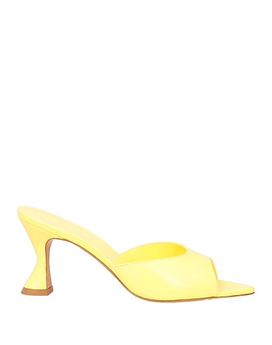 leather, no appliqués, solid colour, leather backing, narrow toeline, spool heel, leather sole, contains non-textile parts of animal origin, slide sandals