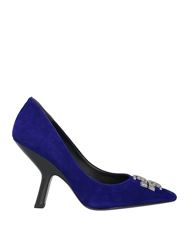 suede effect, brand logo, solid colour with appliqués, leather backing, narrow toeline, geometric heel, leather sole, contains non-textile parts of animal origin, courts, large sized