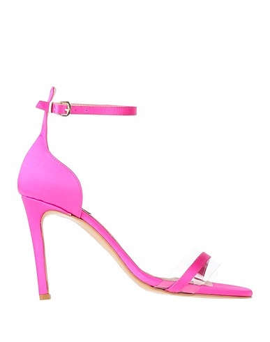 plastic, satin, no appliqués, two-tone, fully lined, buckling ankle strap closure, round toeline, stiletto heel, covered heel, leather sole, contains non-textile parts of animal origin, ankle strap sandal