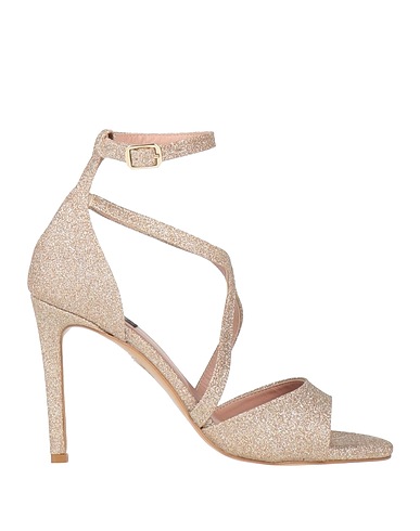 coated fabric, glitter, solid colour, fully lined, buckling ankle strap closure, round toeline, stiletto heel, covered heel, leather sole, contains non-textile parts of animal origin, ankle strap sandal