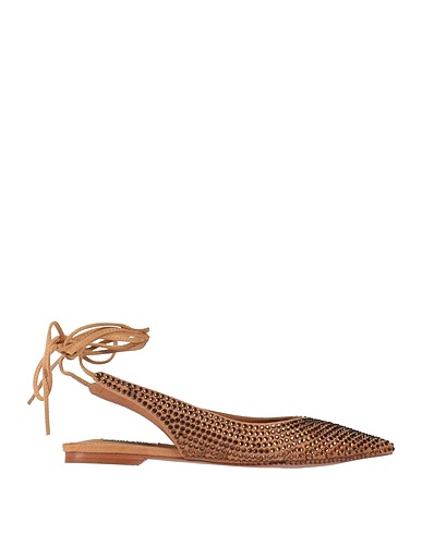 ballet flats, brushed synthetic material, plain colour with appliqués, crystals, lace-up, pointed toe, flat, rubber sole, leather lining, contains non-textile parts of animal origin