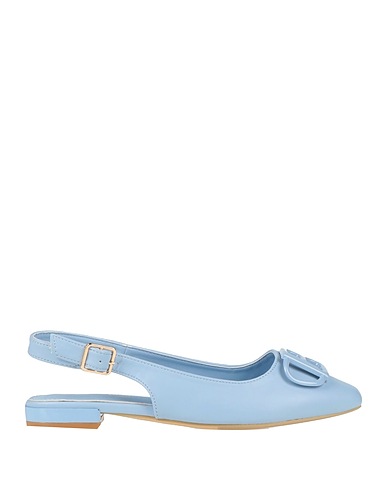 coated fabric, brand logo, plain colour, fully lined, buckle fastening, round toeline, flat, rubber sole, slingback ballet flats