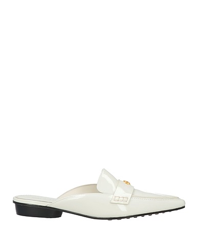 leather, varnished effect, brand logo, plain colour, leather lining, narrow toeline, flat, pebbled sole, contains non-textile parts of animal origin, mules model, large sized